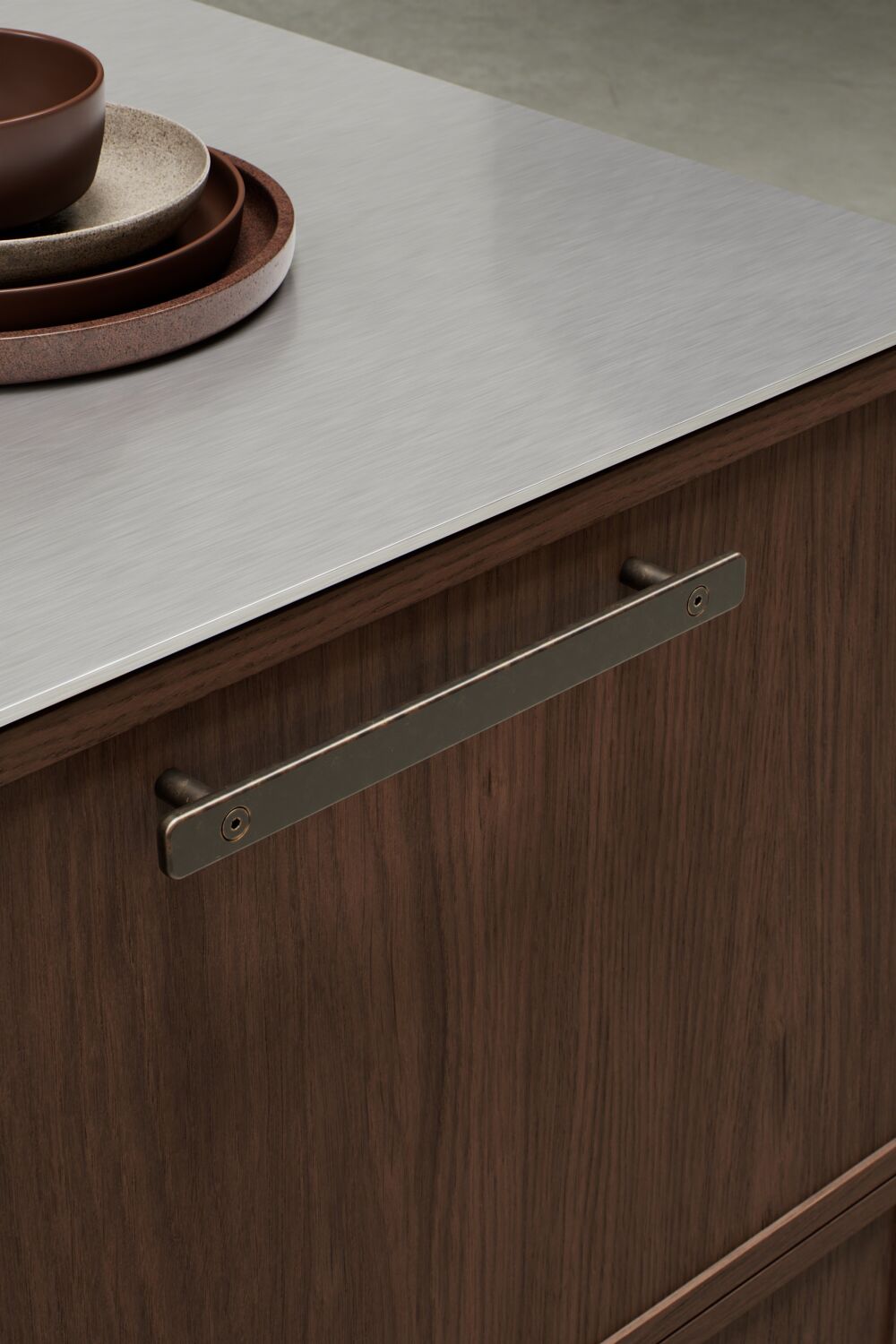 De Tool greep combineert klassieke elegantie met een robuust, modern design. Uitgevoerd in donker antiek brons, voegt deze greep een karakteristieke en tijdloze uitstraling toe aan keukens, badkamers en meubels. De subtiele details en zichtbare schroefkoppen geven de greep een ambachtelijke touch.