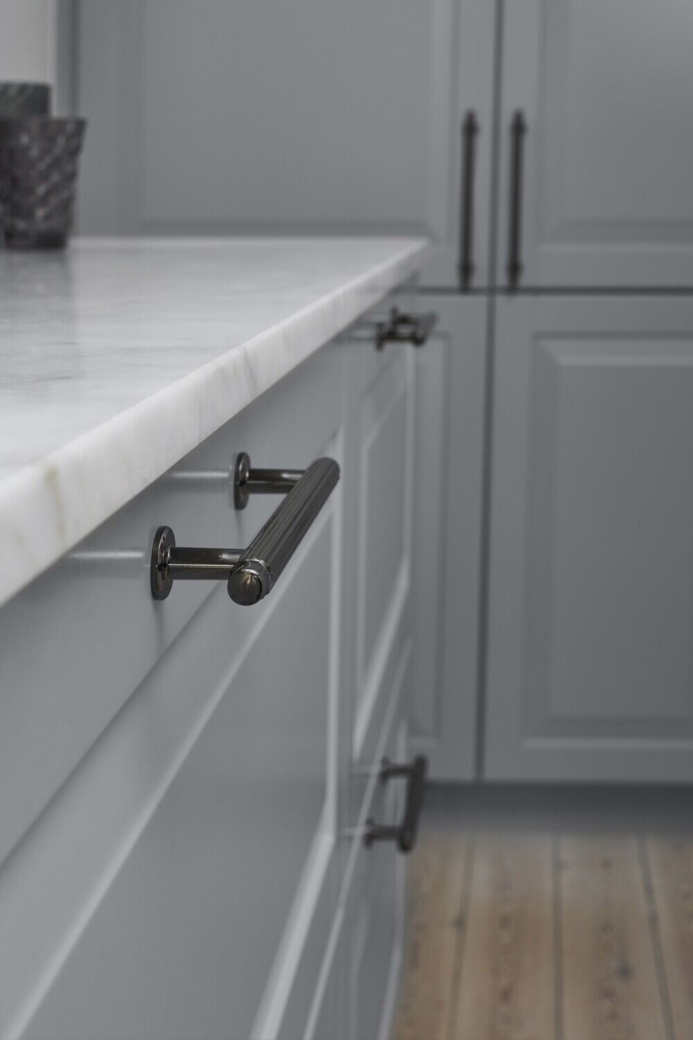 Grepen en knoppen in de kleur Gun Metal