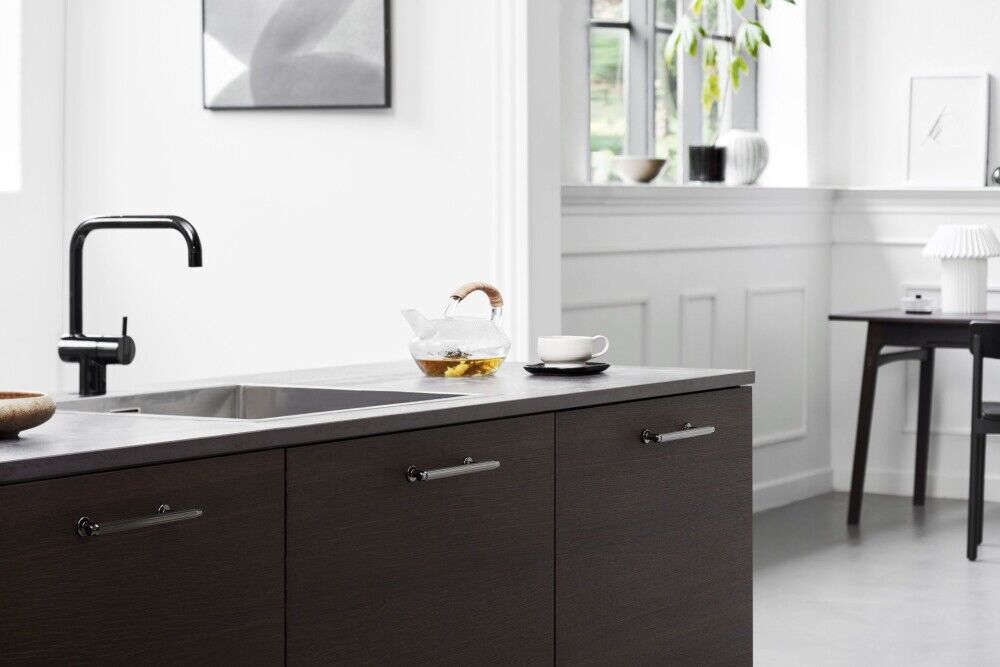 Rechte greep gun metal leverbaar in 5 boorafstanden