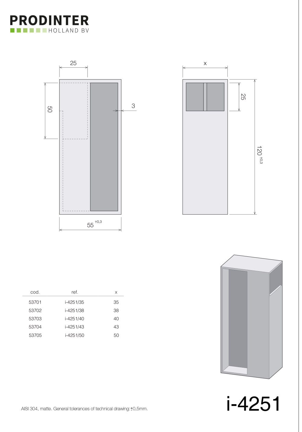 I-4251 Schuifdeurgreep H-120mm B-55mm D-38mm RVS