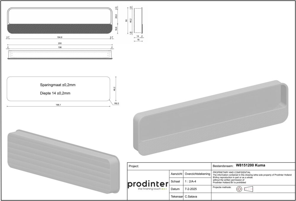 • Ruime maatvoering: 50x200mm formaat, ideaal voor grotere kastdeuren en lades.