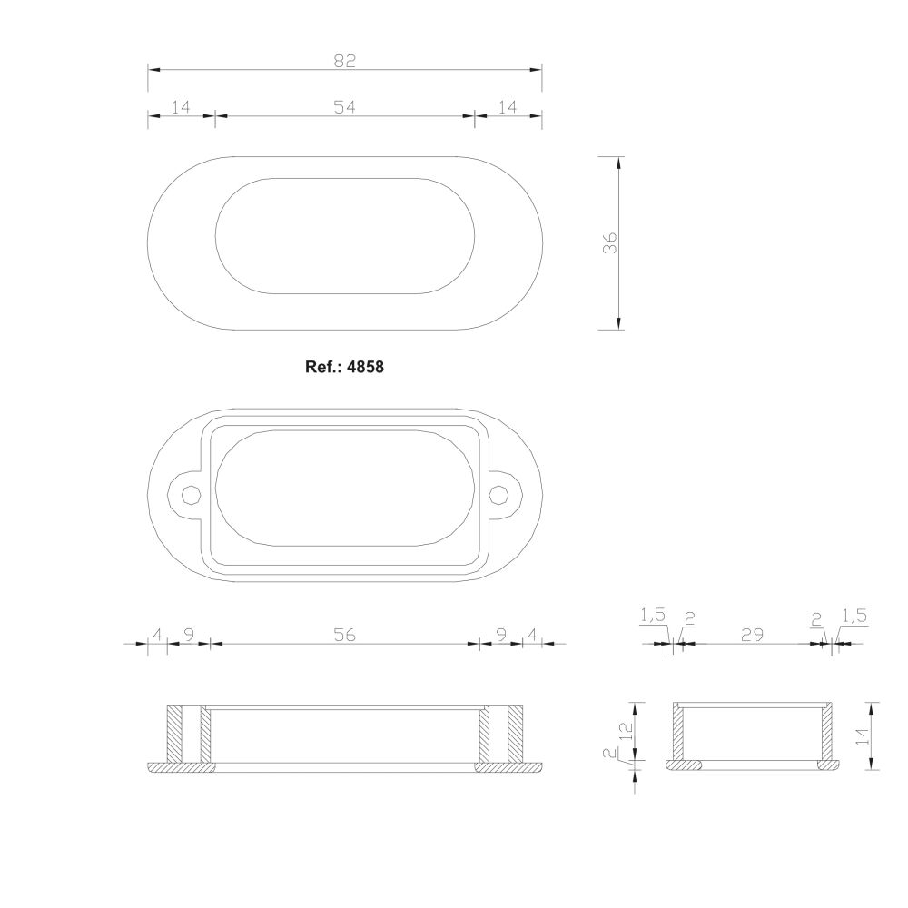 Greep square 10x128x138mm gun metal