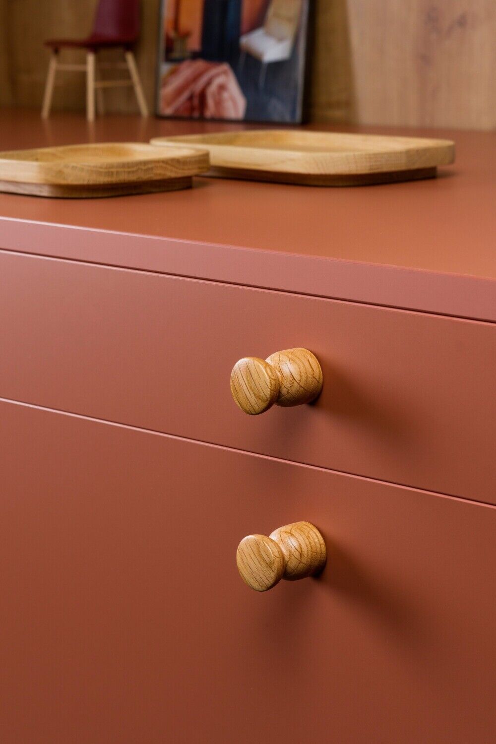 De Piece knop in eikenhout is een compacte en verfijnde kastknop met een warme, natuurlijke uitstraling. Met zijn ronde vorm en lichte houttint is deze knop een tijdloze toevoeging aan lades, kastdeuren en andere meubelstukken.