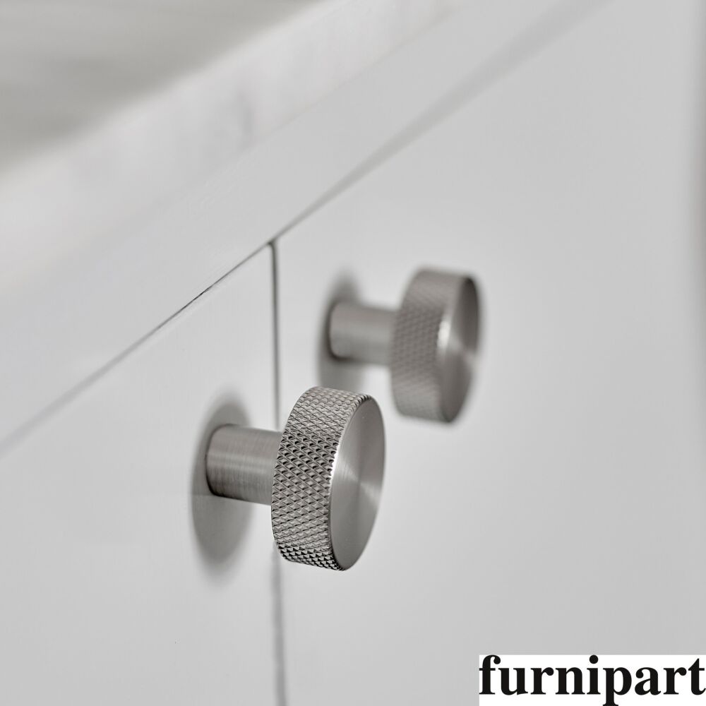 Knop rond ribbel H-30mm RVS look  leverbaar in 2 maten