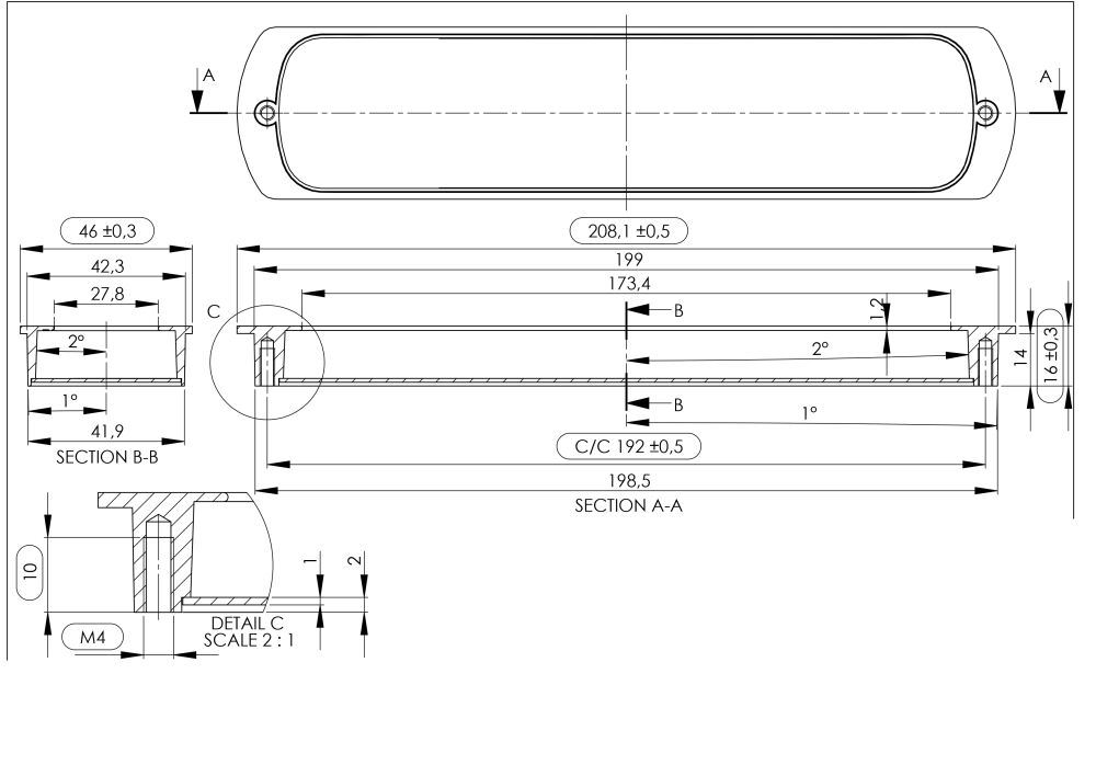 Landmeer infreesgreep is leverbaar in de maat 46X192X208mm de hoogte is 16mm