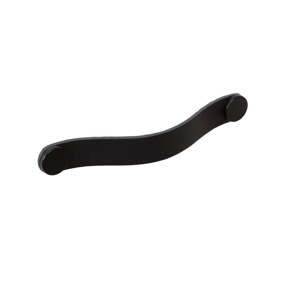 Leren greep rond II 22x160x182mm zwart / zwarte doppen