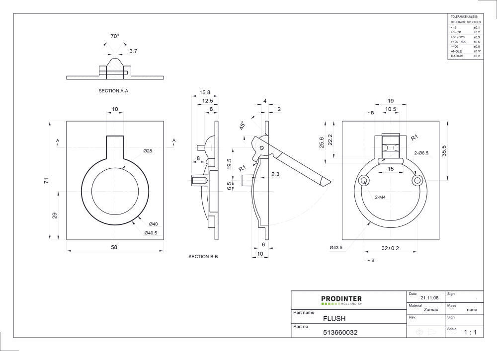 De maten van de luikring zijn H-71mm B-58mm boorafstand 32mm de infreesdiepte is 13/15mm