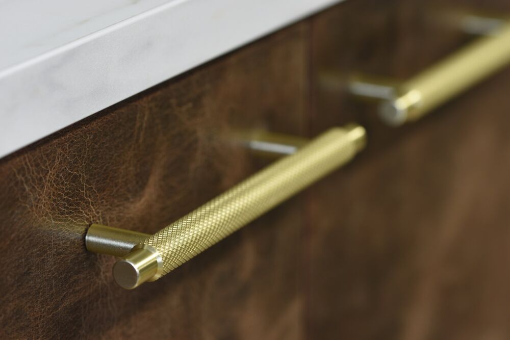 Strakke ribb greep mat messing  de greep is leverbaar in 2 lengte maten