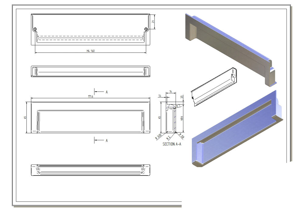 Rechte greep gun metal leverbaar in 5 boorafstanden