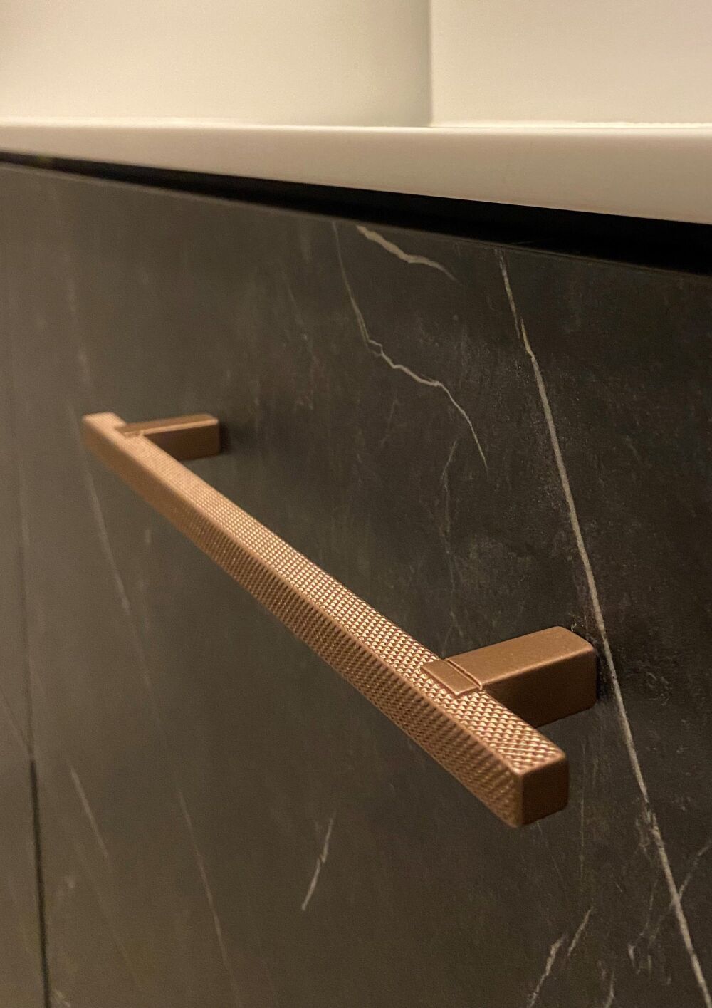 Een elegante touch voor je meubels: de bronskleurige handgreep met structuur