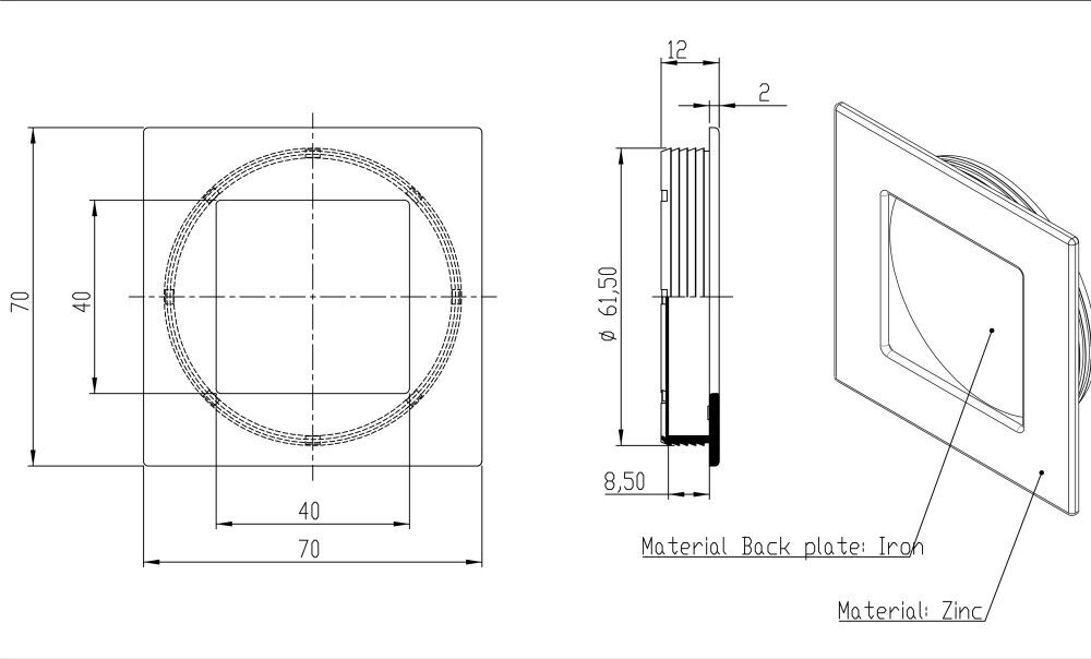 Vierkante infreesgreep 70x70X10mm gl.chroom